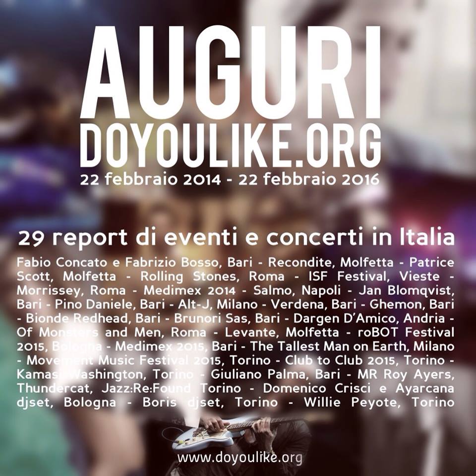 10247212_923216914461155_2658771291765179042_n 29 concerti ed eventi seguiti e recensiti in tutta Italia : Fabio Concato e    Fabrizio Bosso (Bari), Recondite (Molfetta), Patrice Scott (Molfetta),  Rolling Stones (Roma), ISF Festival (Vieste), Morrissey (Roma), Medimex 2014 (Bari), Salmo (Napoli), Jan Blomqvist (Bari), Pino Daniele (Bari), Alt-J (Milano), Verdena (Bari), Ghemon (Bari), Blonde Redhead (Bari), Brunori Sas (Bari), Dargen D’Amico (Andria), Of Monsters and Men (Roma), Levante (Molfetta),  roBOT Festival 2015  (Bologna), Medimex 2015 (Bari), The Tallest Man on Earth (Milano), Movement Music Festival 2015 (Torino), Club to Club 2015 (Torino), Kamasi Washington (Torino), Giuliano Palma (Bari), MR Roy Ayers, Thundercat (Jazz:Re:Found Torino), Domenico Crisci e Ayarcana djset (Bologna),  Boris djset (Torino), Willie Peyote (Torino).