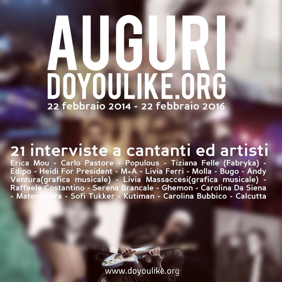12734170_923216754461171_5724905469070265950_n  21 interviste a cantanti ed artisti italiani ed  internazionali : Erica Mou,  Carlo  Pastore,  Populous, Tiziana Felle –  Fabryka, Edipo,  Heidi  For President,  M+A, Livia Ferri,  Molla, Bugo, Andy    Ventura(grafica  musicale), Livia  Massaccesi (grafica  musicale),  Raffaele Costantino, Serena  Brancale, Ghemon,  Carolina Da  Siena, Materianera, Sofi  Tukker, Kutiman, Carolina  Bubbico,  Calcutta.